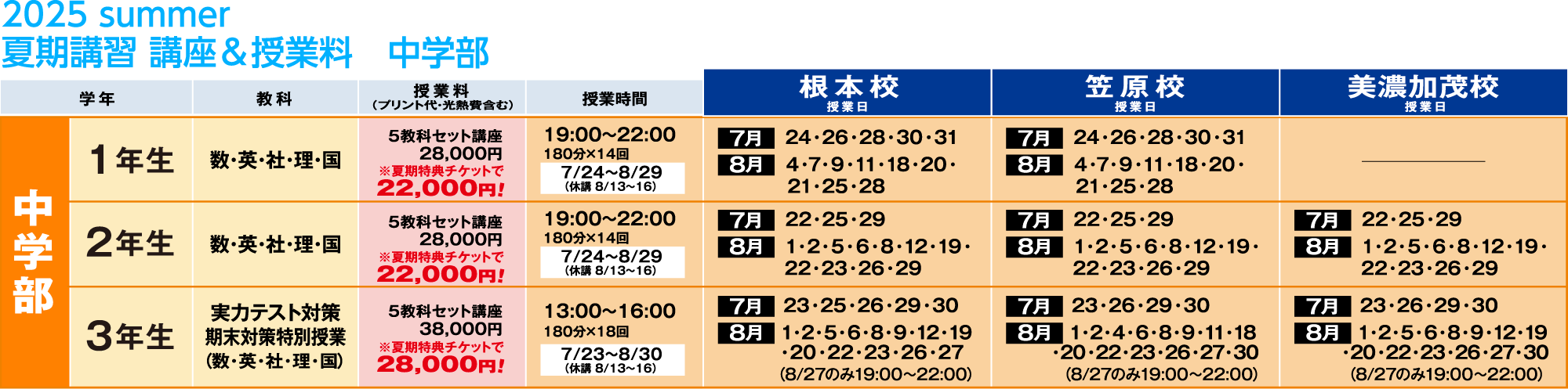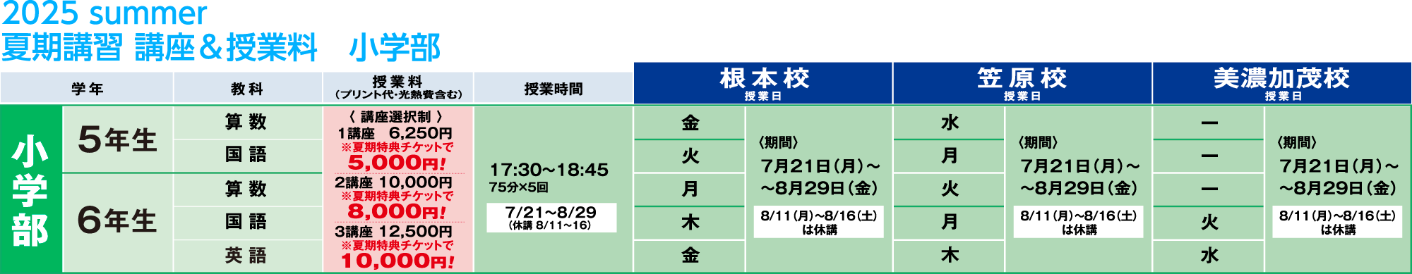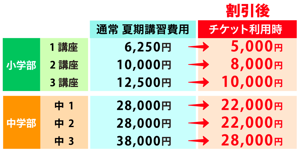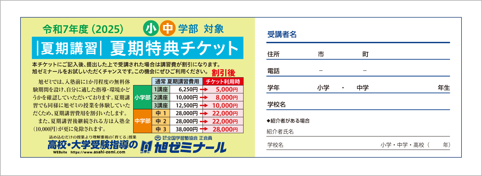 2025年度 夏期講習 小学部・中学部 対象 夏期特典チケット