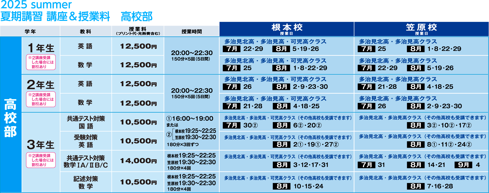 夏期講習後に継続される方は入塾金(10,000円)が更に免除されます。